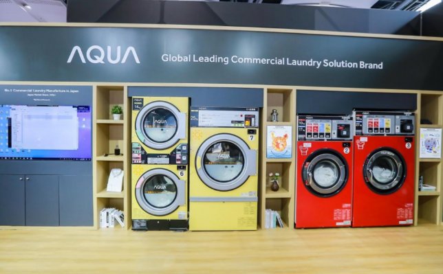 在這里,用戶只需將衣物放進AQUA洗衣機,打開手機APP就能以全視頻直播的形式看見衣物洗滌的全過程,在洗衣完成后,在手機上即可完成支付。