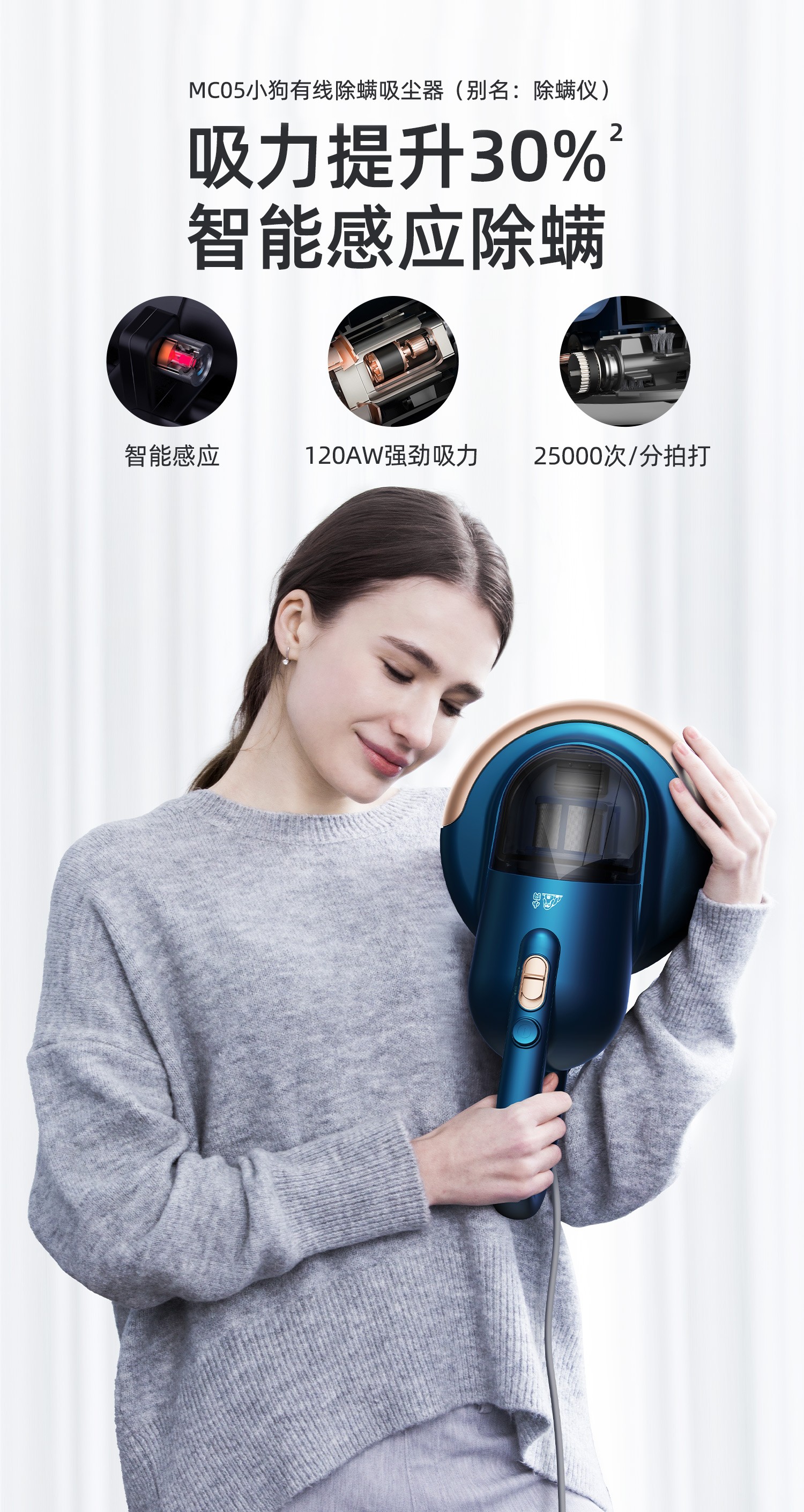 螨蟲一直是威脅家庭成員健康的重要危害之一,常見的清洗、晾曬等手段無法徹底抑制螨蟲繁殖,想要有效除螨建議使用專業的除螨吸塵器。小狗MC05除螨吸塵器應用了小狗旗艦系列才配置的智能感應除塵系統,可高精度、連續檢測氣流中的微塵及過敏原數量,紅黃藍指示燈可以實時顯示清潔程度;電動滾刷25000次/分大面積、高幅度拍打,可以震出深層藏匿的灰塵、螨蟲、皮屑等,120AW的強大吸力輕松吸除各種隱藏的臟污,60℃大流量熱風輔助除濕除螨,UV紫外線燈殺菌率超99.99%;它還擁有精鋼濾網+H12級HEPA+排風海綿,實現整機多重過濾,能夠攔截99.95%小至0.3微米的螨蟲及微塵,防止二次污染。