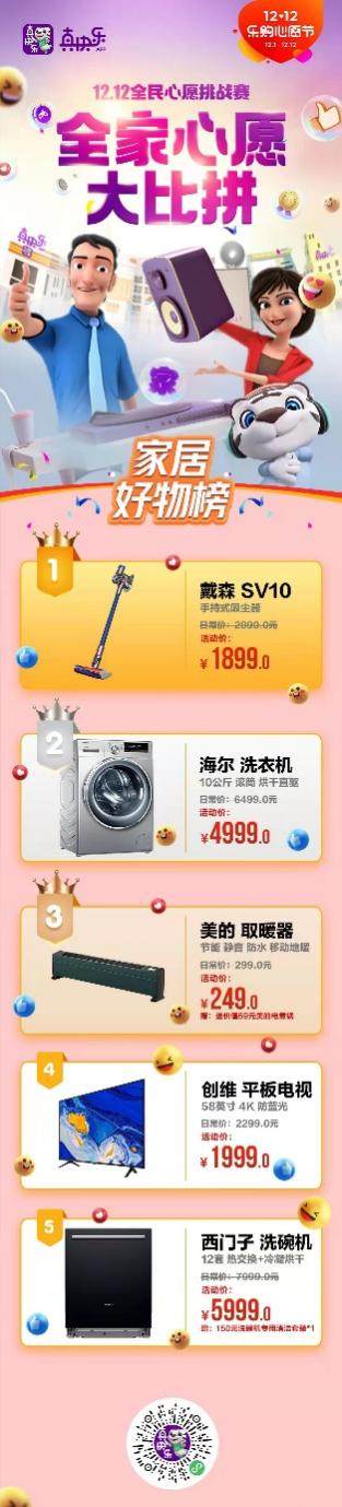除了心愿直播的給力出擊,這次“真快樂”雙12樂購心愿節之全家心愿專場,還圍繞“家生活”場景,開展了一系列心愿放送活動,不止家居家電大牌匯集,多重福利帶你煥新全家品質生活,更有繽紛家賽事引爆參與熱潮!