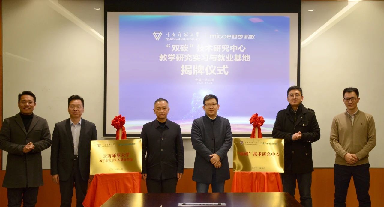 11月25日,云南師范大學&四季沐歌集團“雙碳”技術研究中心(農業類)及云南師范大學教學研究實習與就業基地兩項揭牌儀式在連云港舉行,云南師范大學科技處處長李明、能源與環境科學學院院長徐銳、新能源科學與工程專業負責人王云峰;四季沐歌副總裁徐國棟、低碳研究院院長兼技術中心總監張立峰、企業大學校長梁海港共同參與了揭牌儀式。雙方將充分結合各自優勢,共同開展對雙碳節能技術的研究與應用交流,圍繞人才培養與技術合作,推動科技興農的綠色農業發展戰略。