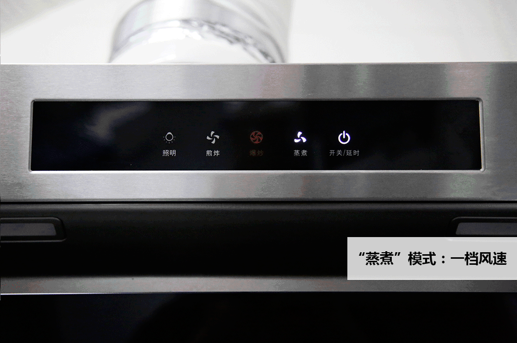 該機(jī)采用了隱藏式的觸屏,共有五個(gè)按鍵、三種吸油煙模式。實(shí)際體驗(yàn)下來(lái),操作簡(jiǎn)單容易上手,而且觸控按鍵用起來(lái)很順手。意外的是,即使手上有水漬、油漬,按鍵操作的成功率還是很高。檔位設(shè)置上,功率從小到大依次為“蒸煮”“煎炸”“爆炒”,對(duì)應(yīng)不同的烹飪方式即可。