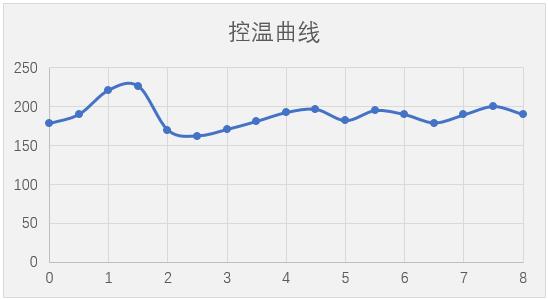 設置180℃,8min定時,觸摸點火后,從油溫監測可以看到,油溫迅速升高,120s內升高至180℃。