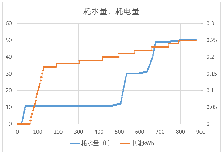 耗水量和耗電量也是大家比較關(guān)心的一點(diǎn),這么大的洗衣機(jī),會(huì)不會(huì)很耗水呢?我們來看一下測試結(jié)果: