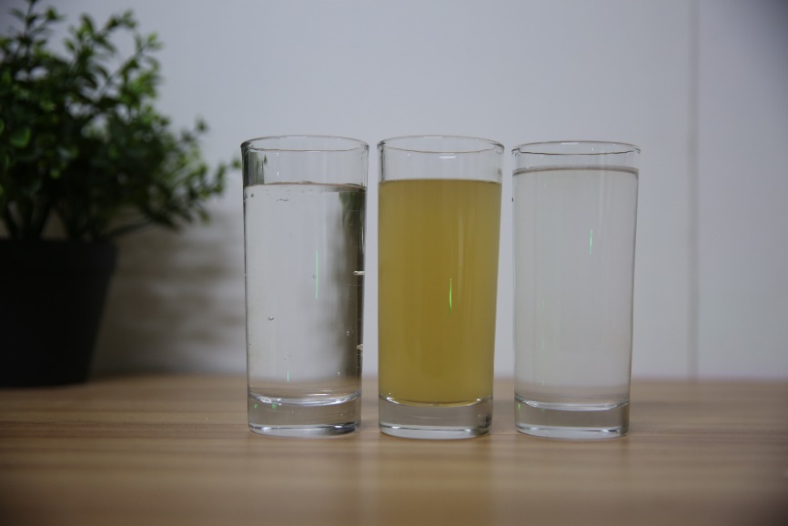 從測試結(jié)果可以看出,這款洗衣機(jī)的漂洗率約為98.9%,衣服上基本沒有殘留洗滌劑。從圖中也可以看出,洗滌水的顏色很深,而最左側(cè)的自來水與最右側(cè)的漂洗水的顏色很接近,也說明漂洗得很干凈。