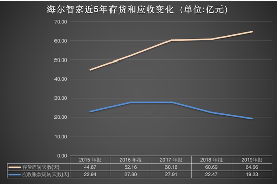 ??在現金流方面,2019年海爾智家經營活動產生的現金流量凈額為150.83億元,期末現金余額349.63億元,資產負債率連續三年下降,2017-2019年分別為69.13%、66.93%和65.33%。