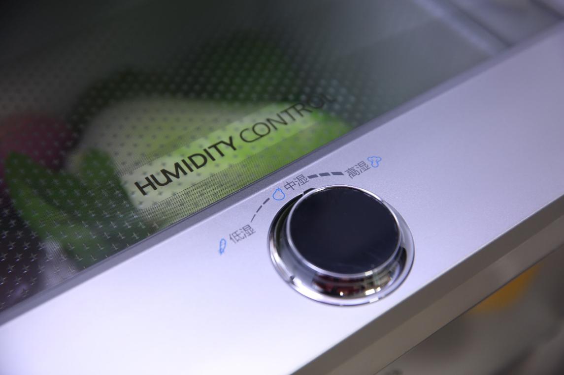 冷藏室內(nèi)的保鮮盒上方有一個(gè)旋鈕,可以調(diào)節(jié)保鮮盒內(nèi)的濕度。不管是需要保存瓜果蔬菜,還是干果臻品,都可以手到擒來(lái)。