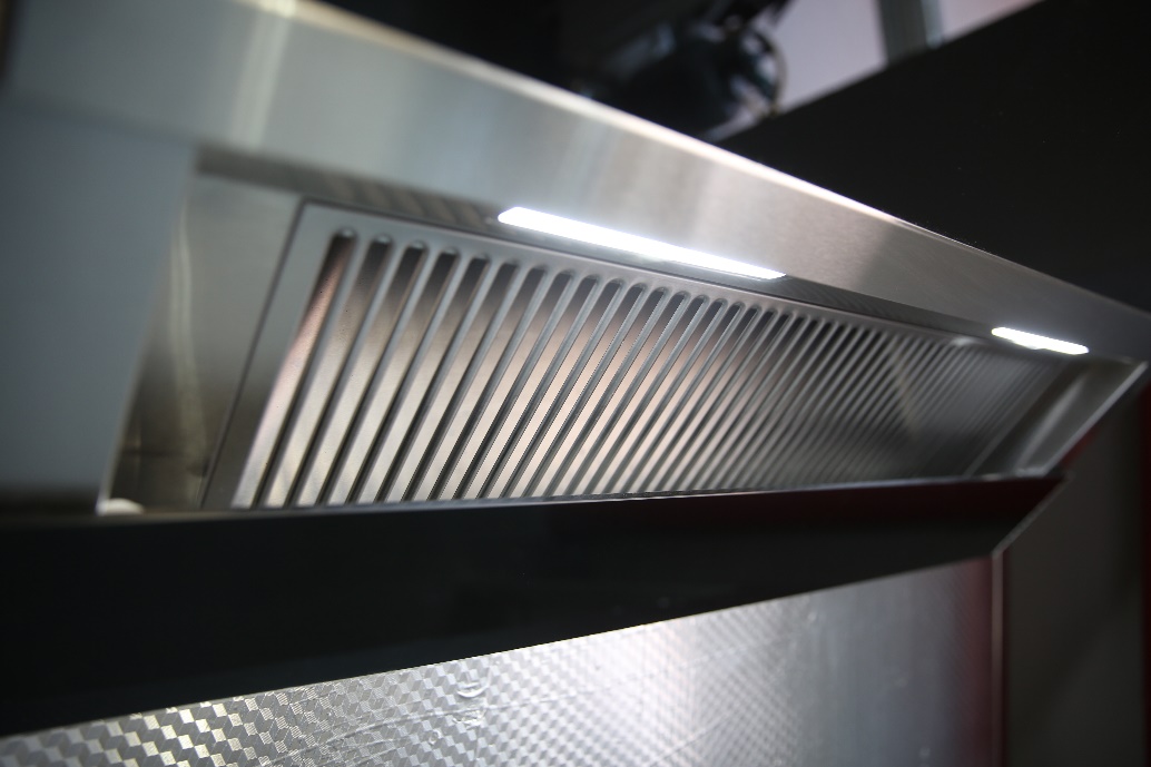 導煙板和吸煙口為“黑晶玻璃+不銹鋼”的組合,簡約大方。煙機關閉,導煙板自動閉合,有效隔絕煙道竄味。