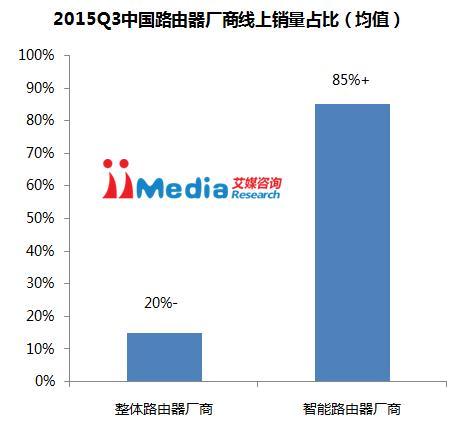 iiMedia Research(艾媒咨詢)數(shù)據(jù)顯示,2015Q3中國各智能路由器廠商線上渠道出貨量平均占總出貨量的85%以上,而路由器全行業(yè)的線上出貨量平均不超過20%。