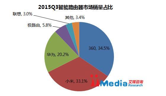 iiMedia Research(艾媒咨詢)數(shù)據(jù)顯示,2015Q3中國智能路由市場銷量方面,360,小米,華為以34.5%,33.1%及20.2%位列前三。