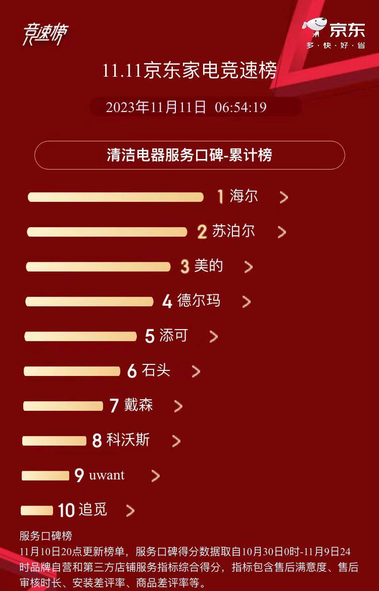 躍居雙11口碑榜TOP1!海爾