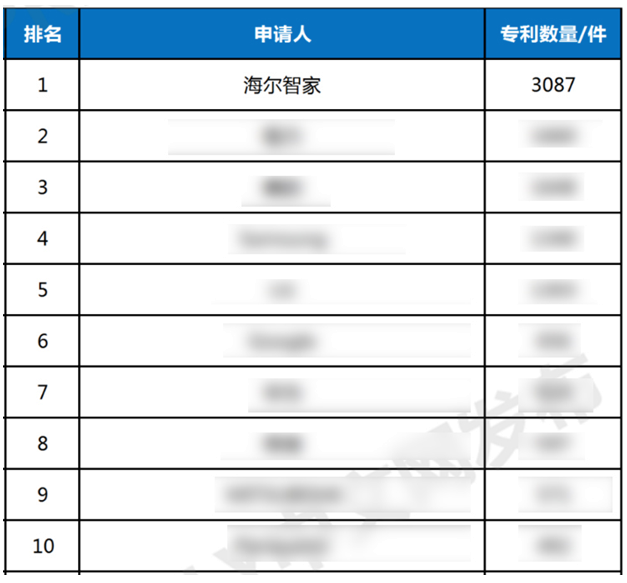 全球智慧家庭發明專利榜:海爾智家連續9次第一