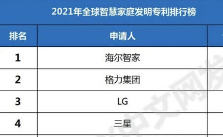 1月7日,根據IPRdaily中文網發布的《2021全球智慧家庭發明專利TOP 100》排行榜顯示,海爾智家以4535件公開的專利申請數量居于榜首。這是海爾智家連續第六次拿到該榜單的全球第一,累計專利