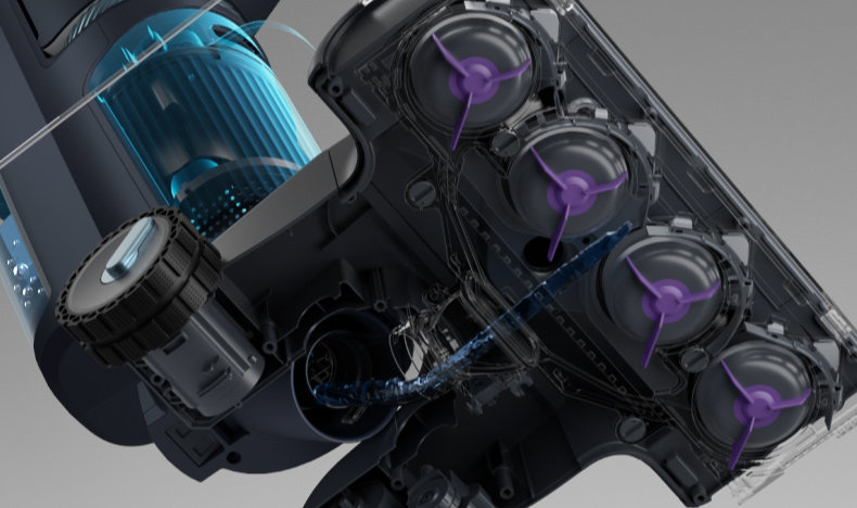 在意識到傳統洗地機滾布清潔方式的弊端以及行業企業單純延長續航、增加關節靈活性等同質化嚴重的“微創新”現象后,米博致力于真正的技術創新,探索出水氣旋高能流體沖洗和高速地刷擦洗結合的全新解決方案,開創了